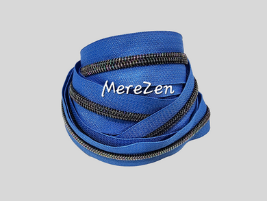 Blue Zipper Tape with Gunmetal teeth - No. 5