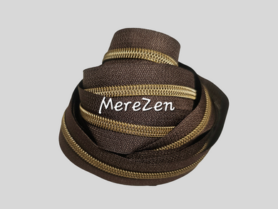 Chocolate Zipper Tape with Antique Bronze teeth - No. 5