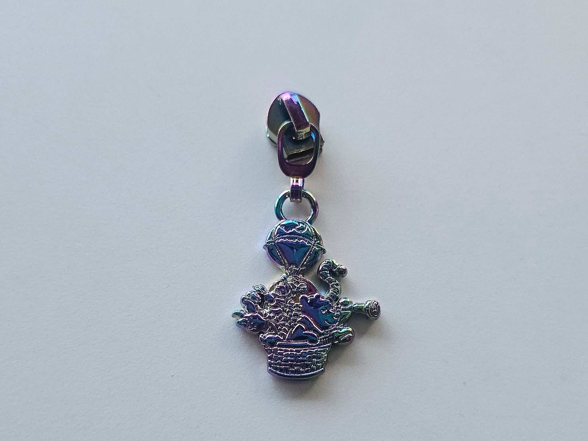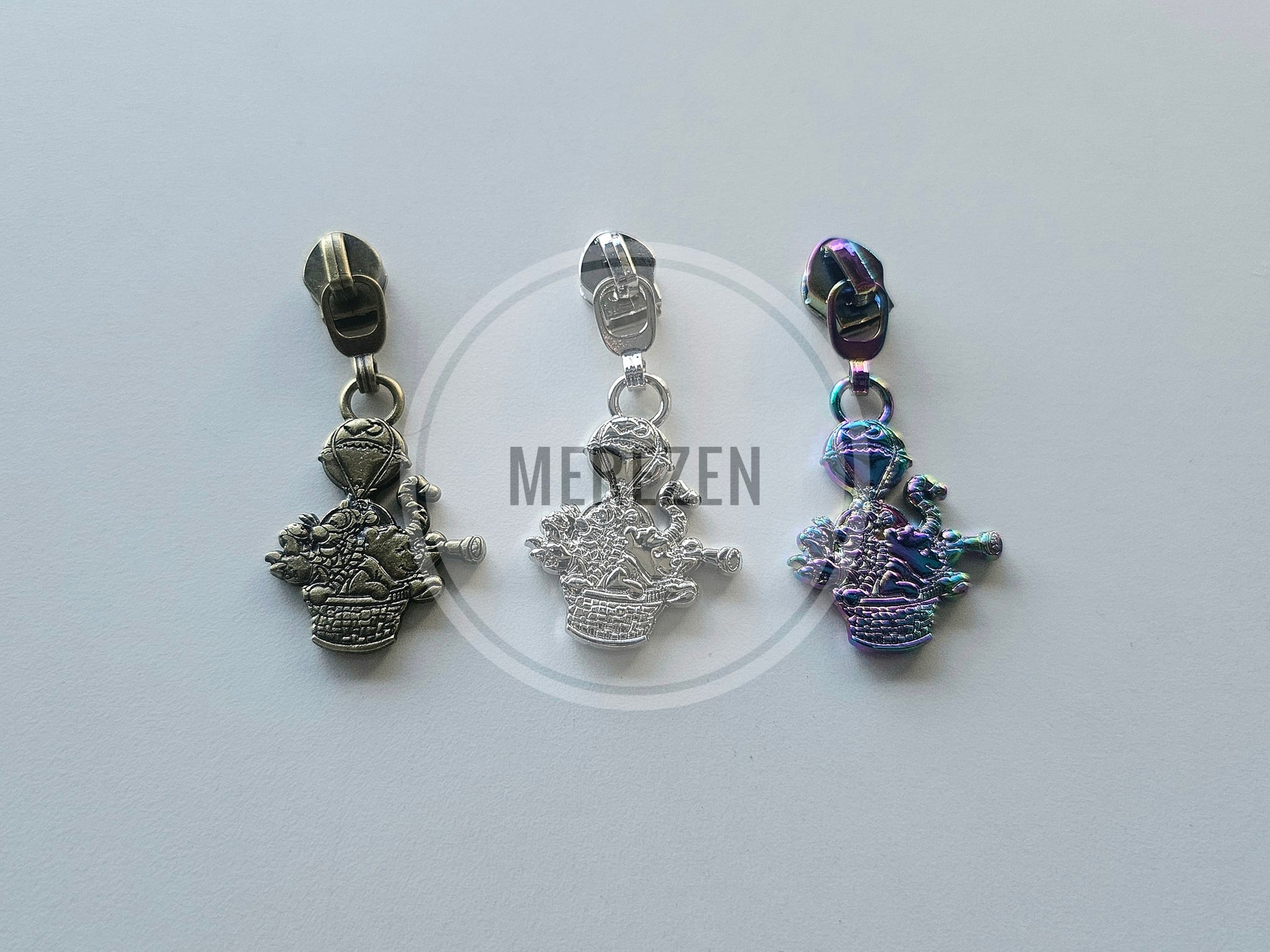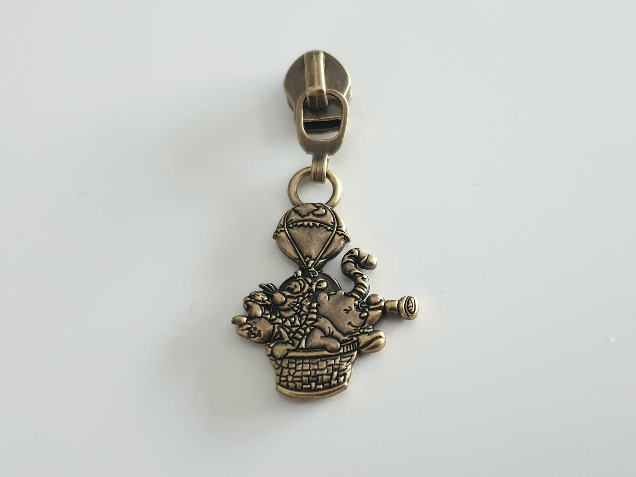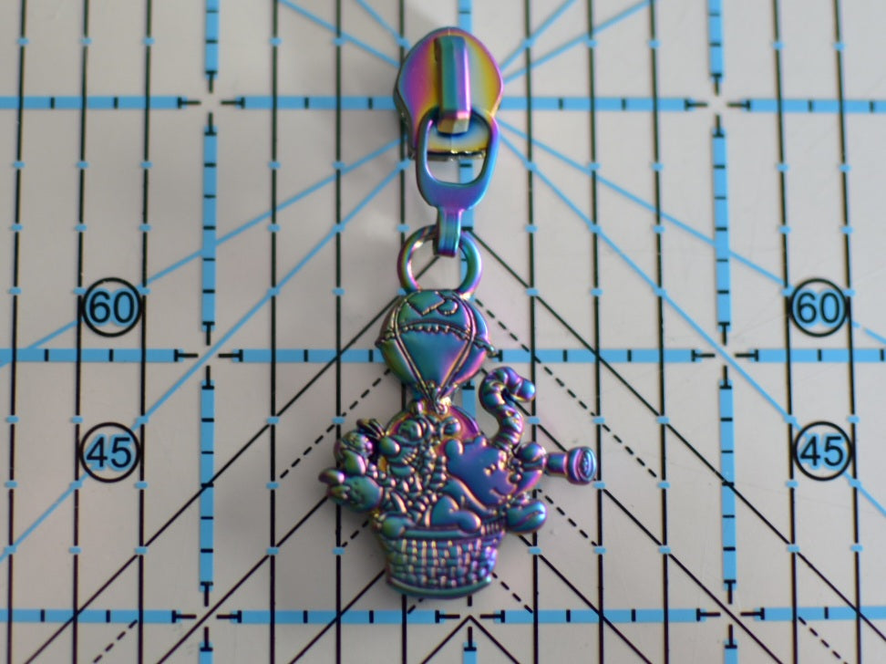 These exclusive double sided No. 5 zipper pulls have a beautiful amount of detail with bear and friends in a hot air balloon. They pair perfectly with our 1 inch Bear Adventure Strap Connectors.