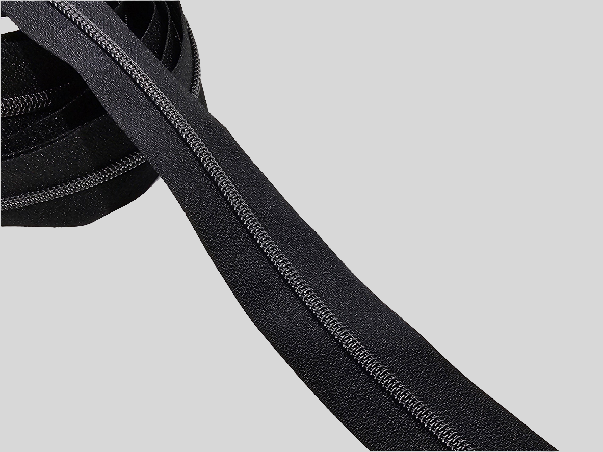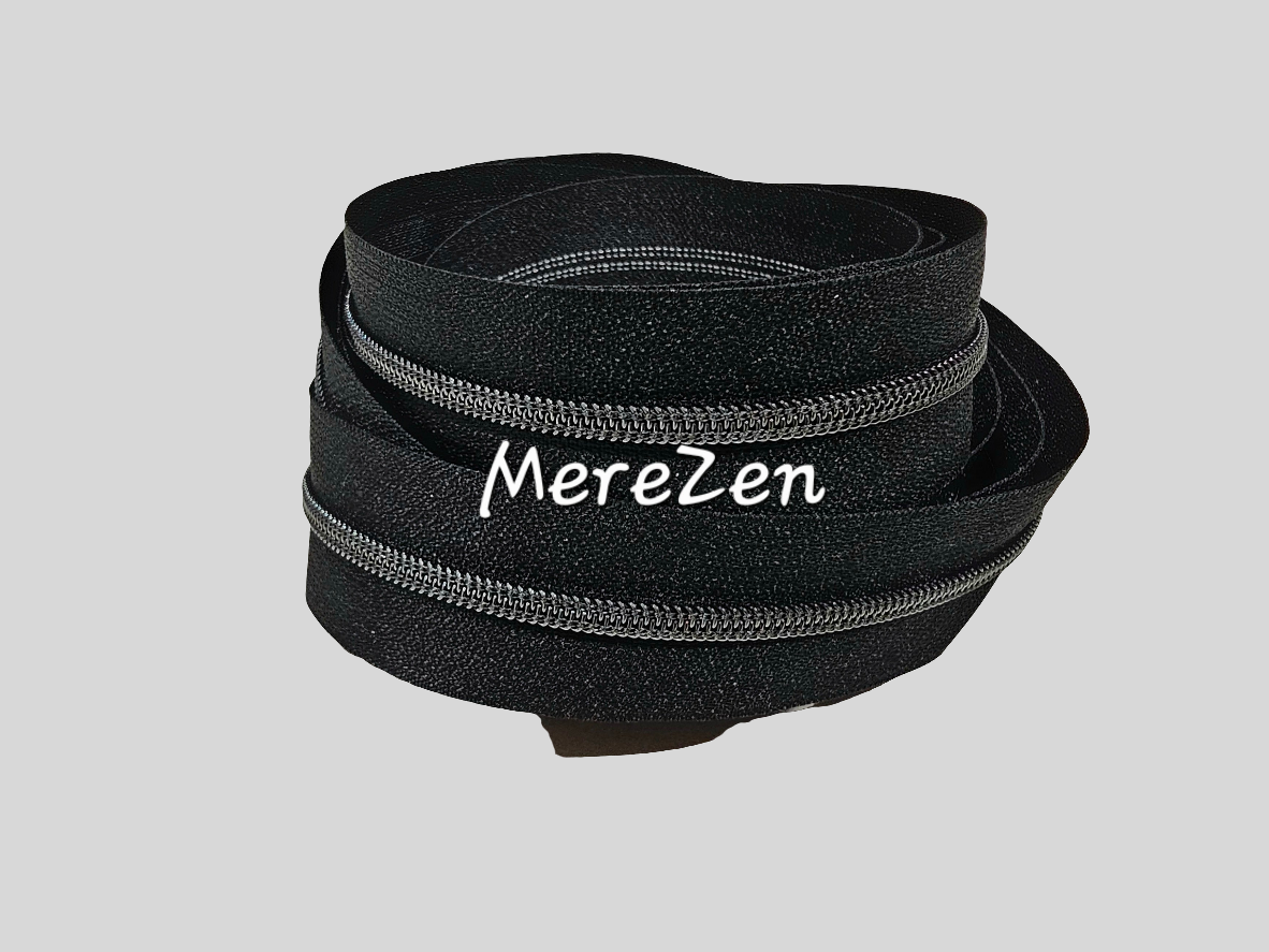 Nylon number 3 Black colour zipper tape with Gunmetal teeth.