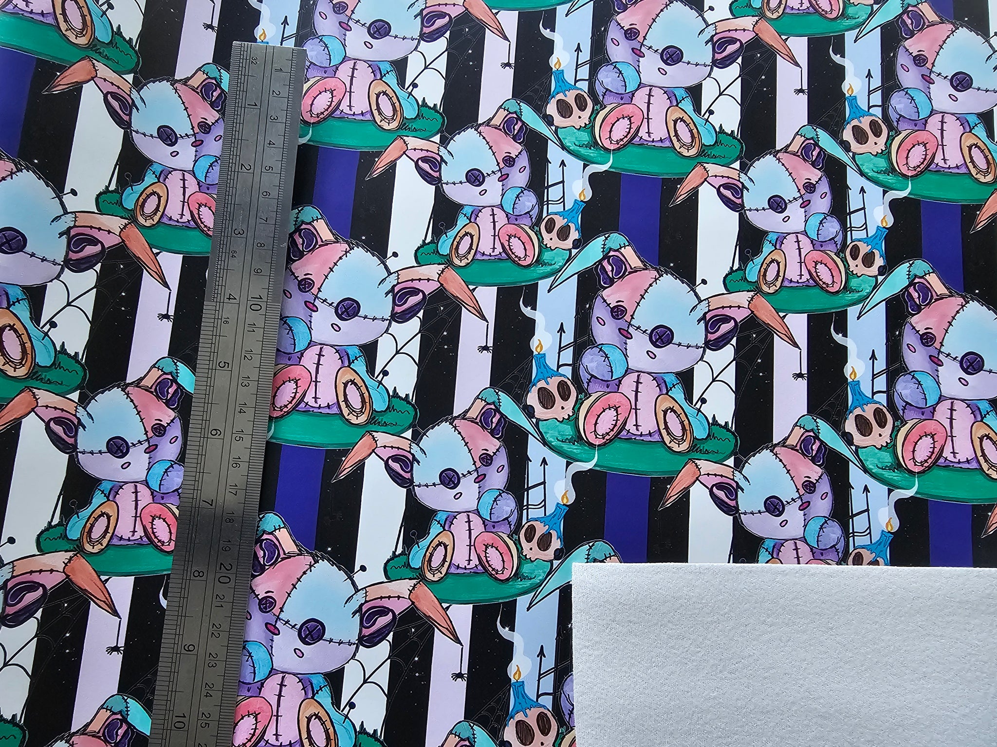 This stunning printed vinyl has the cutuest voodoo doll design on a stripe background.