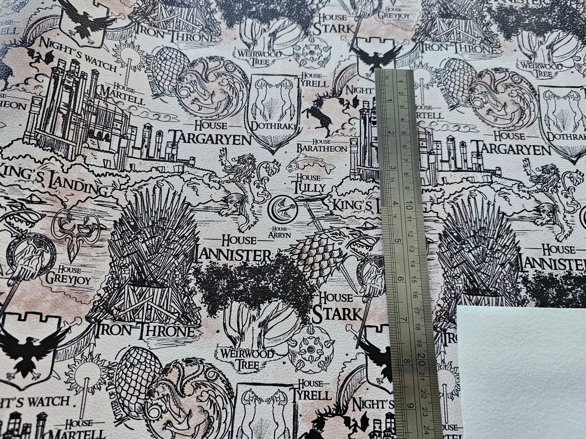 This stunning printed vinyl has a detailed print of some dragons over a vast world of Kings.