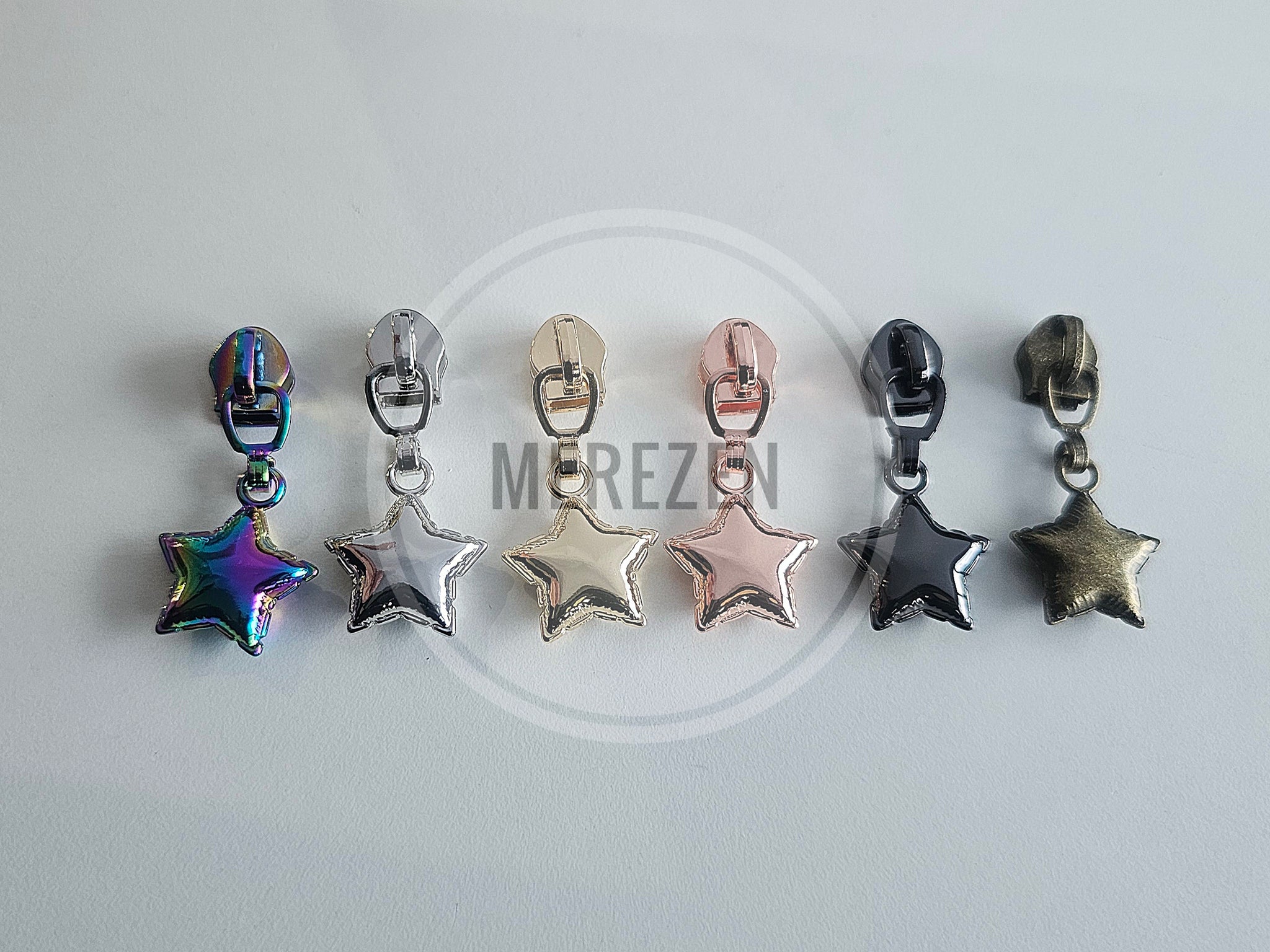 These are our gorgeous No. 5 Star Balloon zipper pulls.