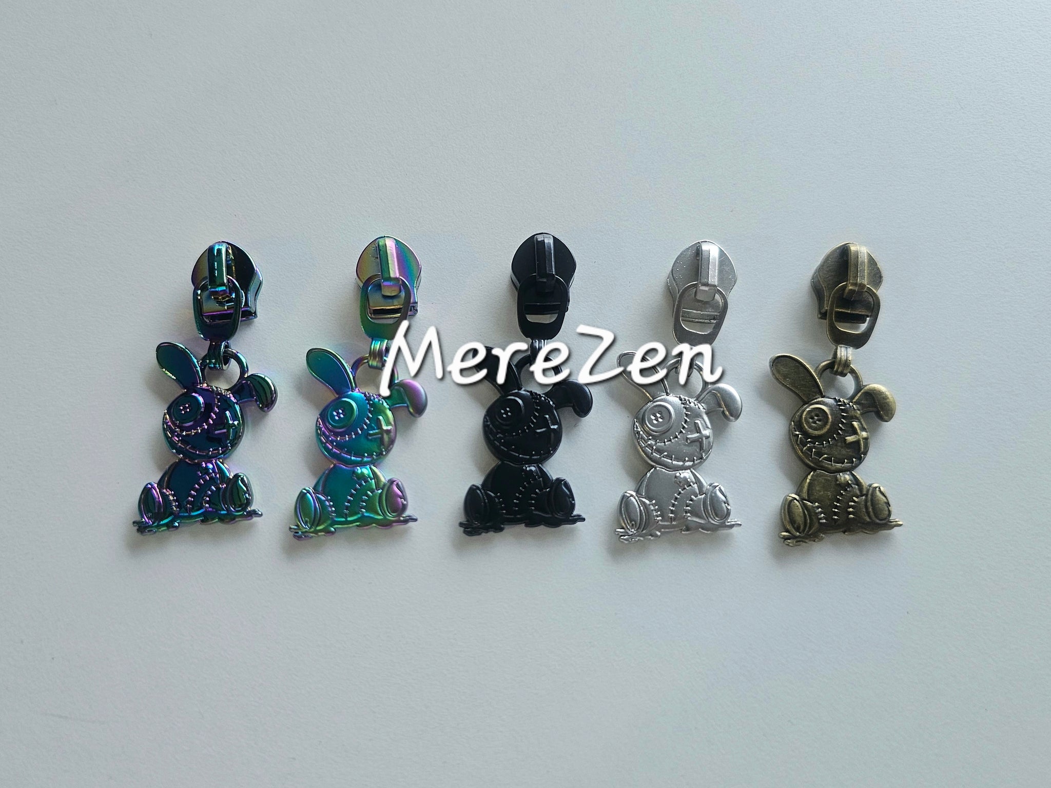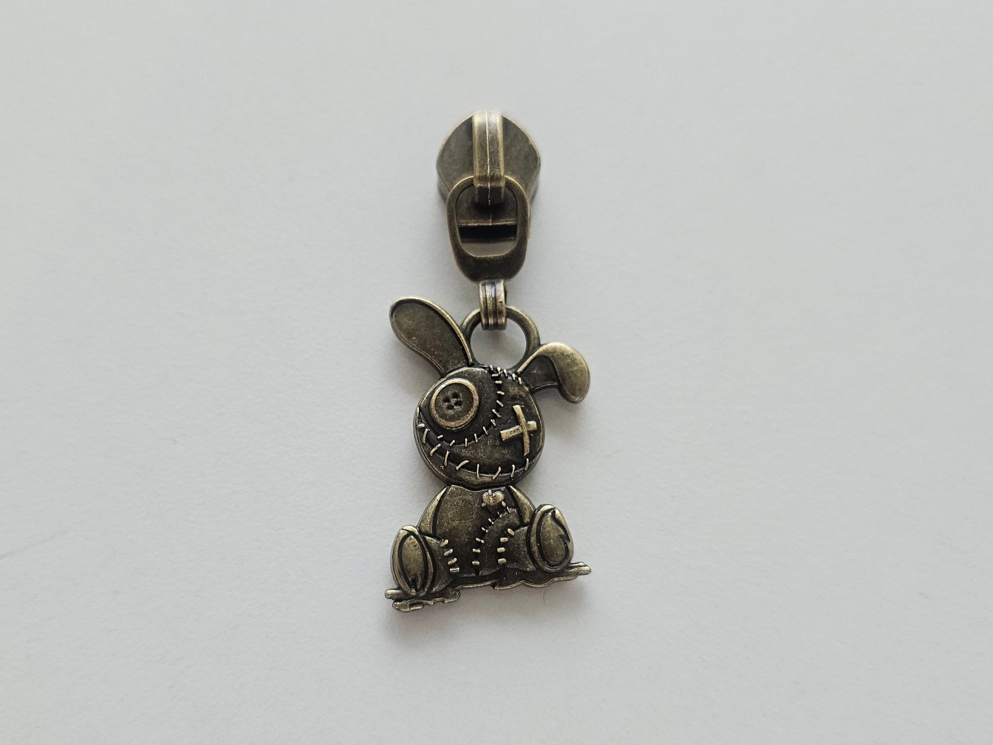 These exclusive double sided No. 5 zipper pulls in a voodoo doll design add that extra spooky touch to your bag.